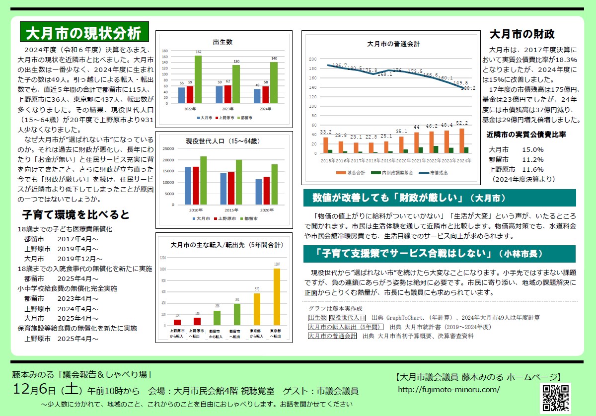 客観的データに基づく透明性の高い市政運営を行い、その結果と具体的アクションは本シリーズで随時ご報告してまいります。